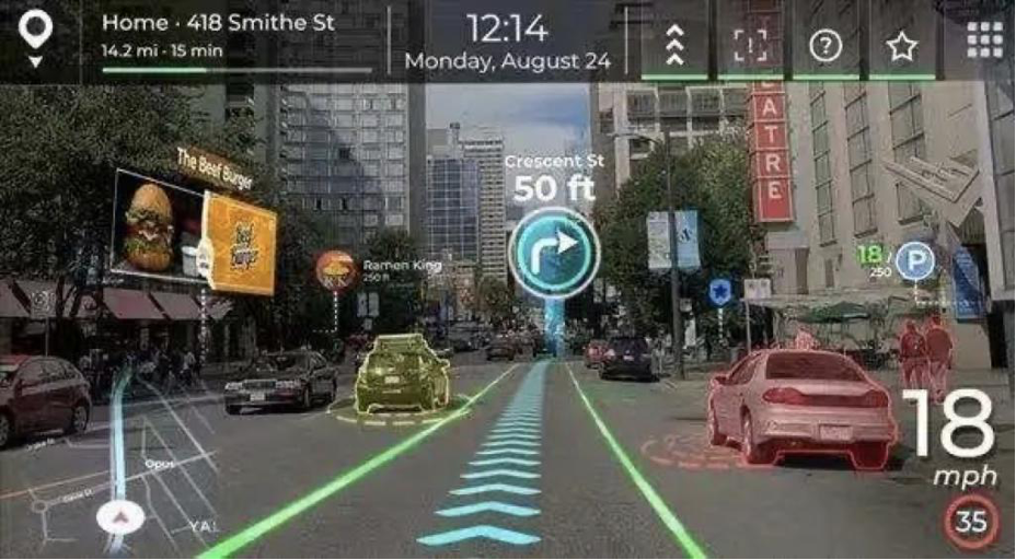 除了纯娱乐体验,带有科幻感的驾驶体验也令人耳目一新。松下曾展出一款具有眼球追踪专利的 AR-HUD 2.0 系统,通过 AR 技术,这套系统可以将图标更精确地聚焦到驾驶员眼前的现实世界,提高驾驶员视野中图像的真实程度和临场感,不仅为驾驶员带来“赛博朋克”的驾驶体验,也能有效减轻驾驶过程中的视觉疲劳感。