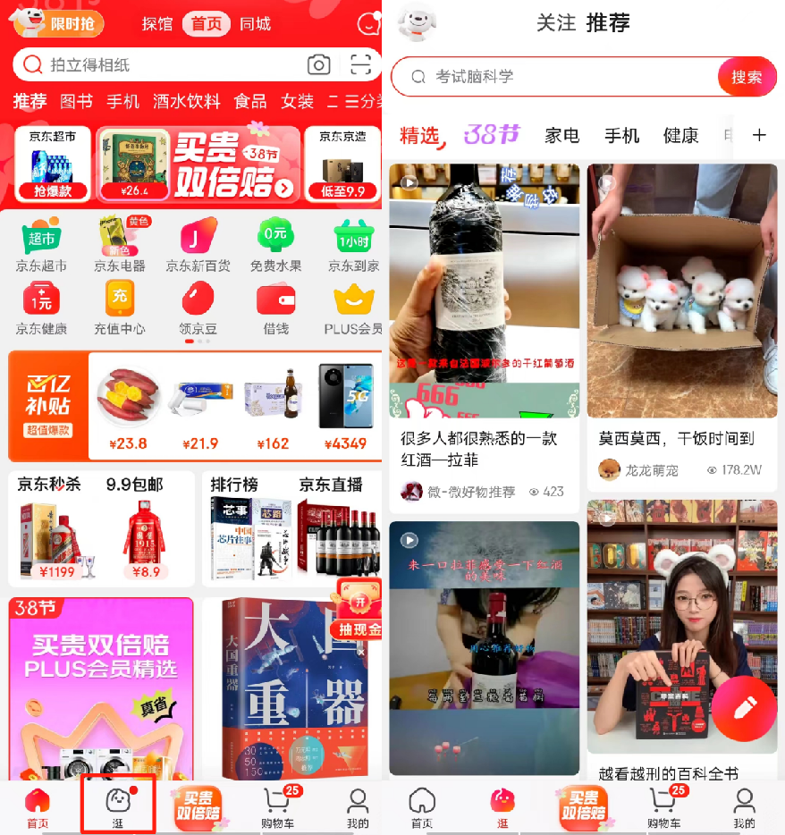 京东逛入口及首页,图/京东APP