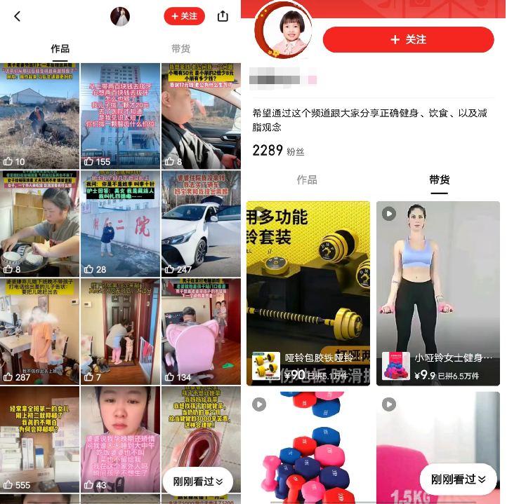 在用户主页设计上,将作品和带货视频分开具有一定的创新。但问题在于,除了商家硬带货之外,其余内容均为“影视剪辑”或“娱乐八卦”,其内容生态较为单调。