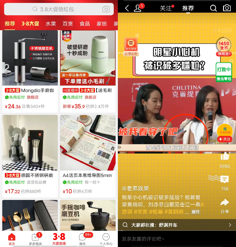 但是,不论是淘宝的“逛逛”、京东的“逛”,还是拼多多的“多多视频”,其根本问题在于,用户抱着消费目的打开APP,买东西的过程中顺带刷刷视频,这和抖快逻辑完全相反。